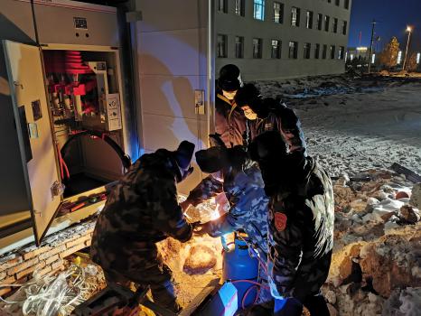12月的東烏旗,室外氣溫已經(jīng)逼近零下二十四五度,在外面待一會兒就冷的不行,更別說長時間進行露天作業(yè)了。由于前幾日的降雪,氣溫驟降,土壤深度凍結(jié),施工現(xiàn)場已不具備機具施工條件,電建東烏分公司施工人員針對施工中遇到的困難,一致決定采取“笨辦法”,挖不動的地方先用火烤,機器進不去的地方就用人扛著電纜往里送,想方設(shè)法確保工程按期完成。